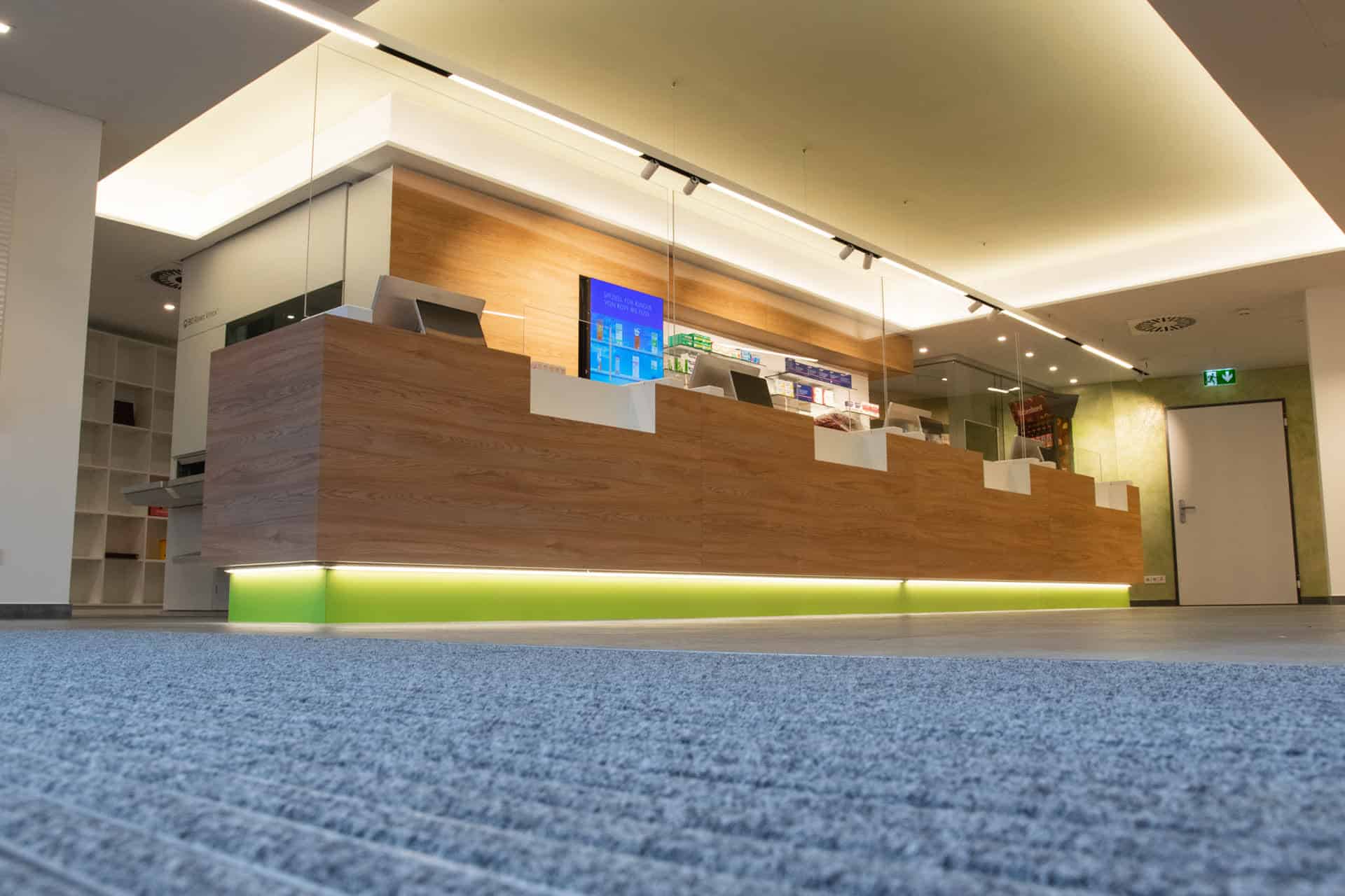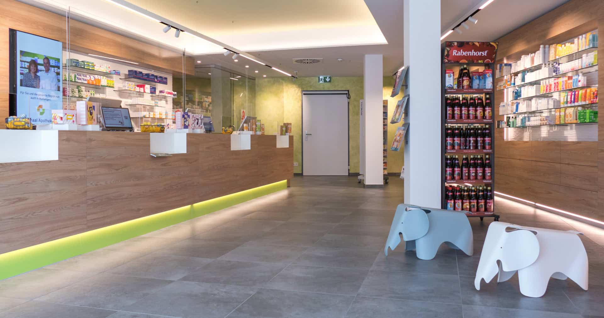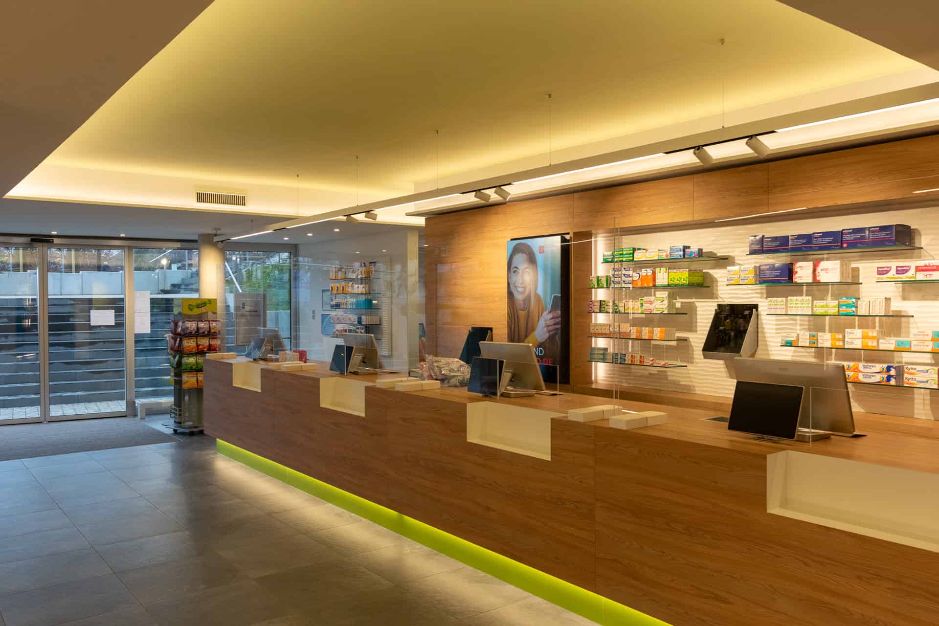 Nachdem Hartmut und Claudia Schaal bereits drei Apotheken im Zentrum von Schwäbisch Gmünd erfolgreich führen, bildet die im Februar 2022 eröffnete Apotheke am Stauferklinikum den vierten Betriebsstandort. Von Beginn an stand die leichte Erreichbarkeit im Vordergrund, welche ein barrierefreier Zugang mit Handläufen und einer angenehmen Schräge gewährleistet. Um den Kunden ein stressfreies Einkaufserlebnis zu garantieren, finden sich vor dem Gebäude zudem acht kostenlose Parkplätze.